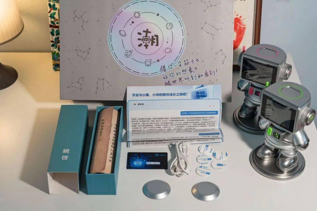礼盒内含2 台 AI 机器人、3万算力卡、一封临摹李隆基字体手诏,满满仪式感,包装高档有面,无论是给自家孩子用,还是送给亲友的孩子,都超有份量~
