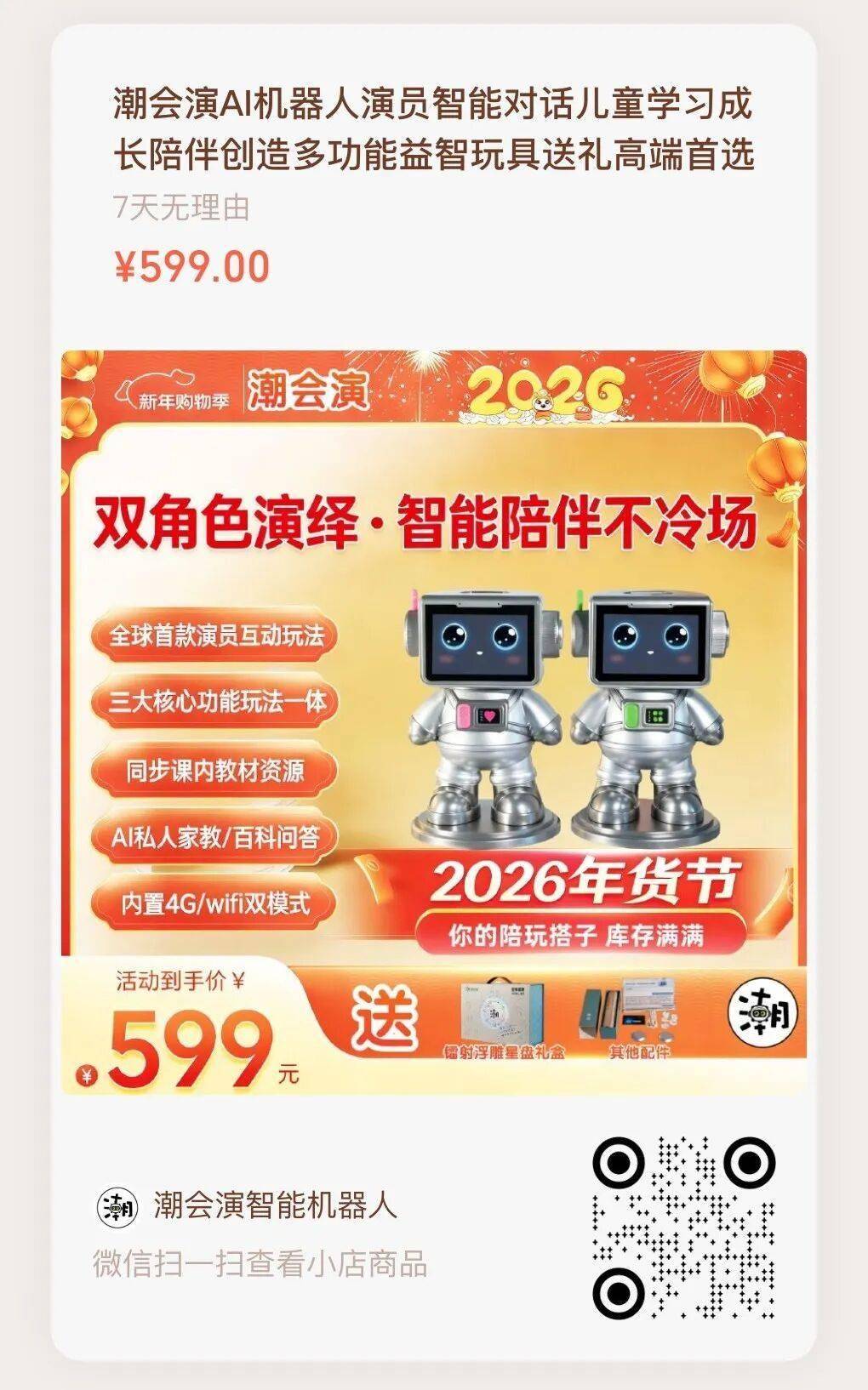 一对潮会演AI机器人= 创意伙伴+情绪搭子+私教老师+百科全书+专属玩伴+戏班子 ! 真正解放爸妈!